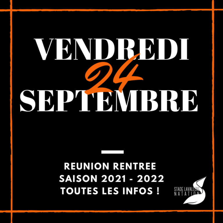 Nous vous invitons le vendredi 24 septembre à 20h au siège social du SLO 16 place Henri Bisson pour notre réunion de rentrée du Stade Lavallois Natation.